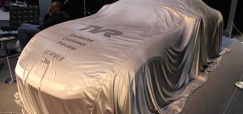 The body design was kept hidden under a sheet. If you want to see what it looks like first you have to put down £5,000 deposit! This is for a car that is yet to be in production. As an official customer for the cost of £5,000 you get to be first to see the design at private viewings later in the year.